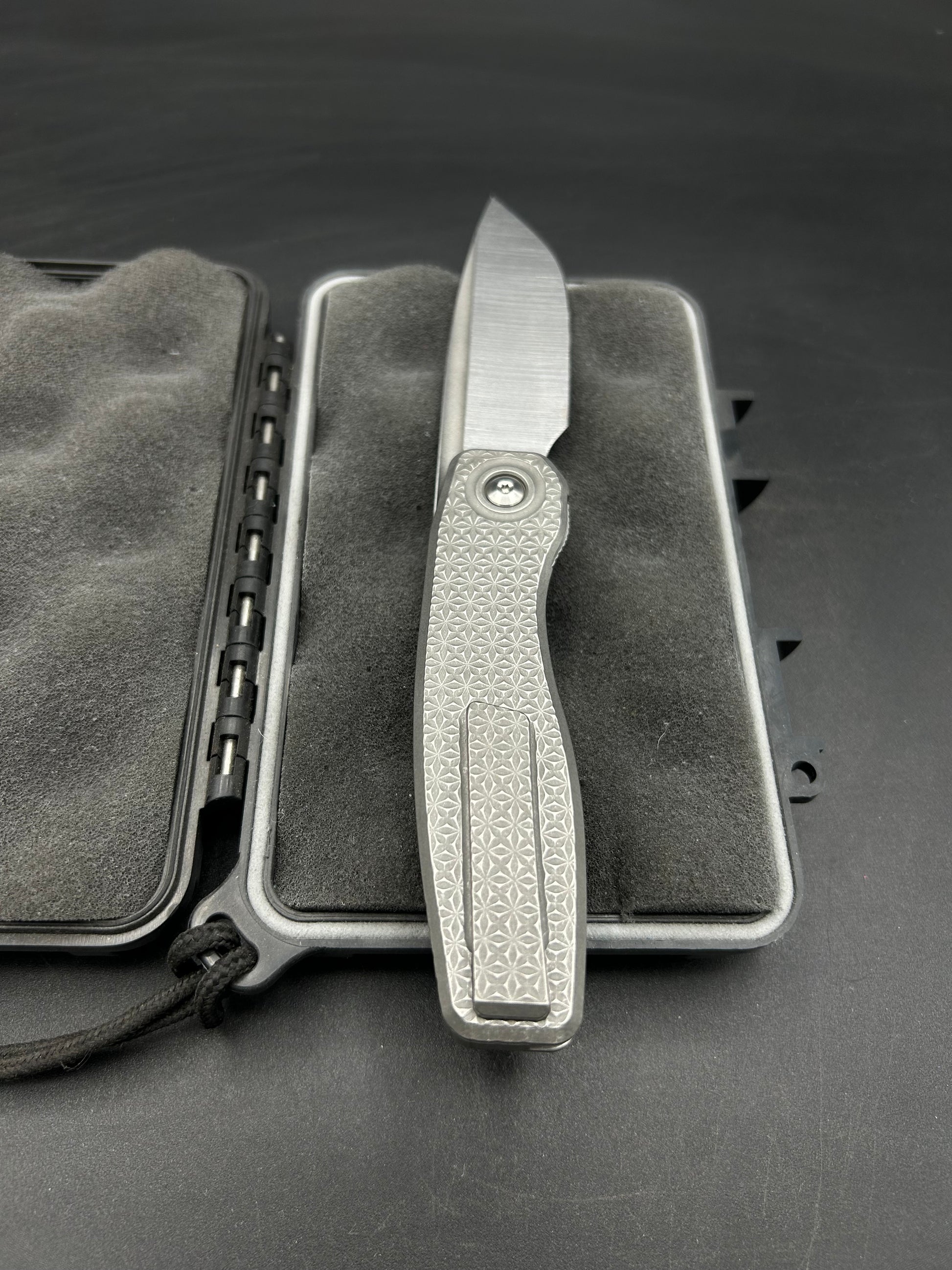 - Bead Blast Distressed Titanium Pocket Clip Milling Style #5